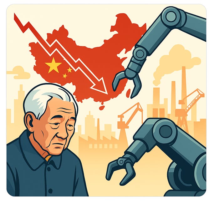 China stands upon a precipice carved by its own policies and foreign confrontation—a nation pressed between the grinding stones of demographic inversion and technological displacement. Two major essays, once standing separately, now converge to capture the unified crisis: a rapidly aging population and seismic shifts in labour automation. But new vectors emerge. External economic pressure from Trump-era U.S. tariffs have—ironically—opened space for China to recalibrate. Through the prism of John Mearsheimer’s offensive realism, what might appear as terminal decline reveals itself as strategic reorientation. China, the would-be hegemon of East Asia, now manoeuvres within constraints shaped by both internal fragility and global rivalry.