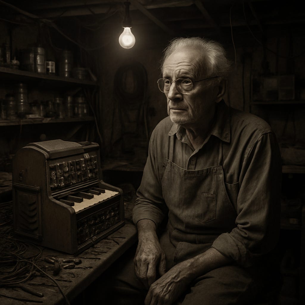 The organ wasn’t about the music, not for Pop. It was about solving a problem, about building something from nothing, using his hands to make sense of the world. That’s what he did, whether he was fixing a broken machine or making something entirely new. He was always thinking, always tinkering, always learning. He never saw things as finished; they were just works in progress, like the organ itself.