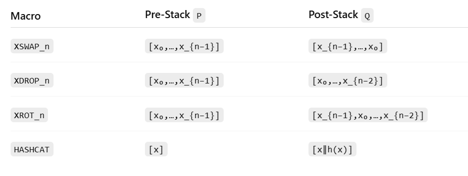 • Additional macros—multi-index roll, alt-stack batching, fixed-depth Merkle proof verifiers—can be defined under the same framework, expanding the library without touching consensus.