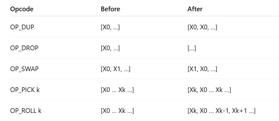 OP_TOALTSTACK,OP_FROMALTSTACK,OP_IFDUP, etc.) allow manipulation of this space.
