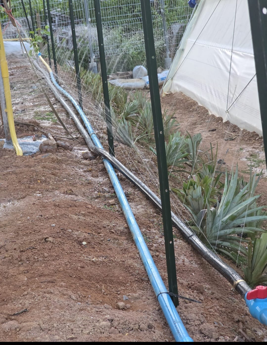 By the time the line was pressurised, the pineapple leaves were humming. The sound isn’t audible, but you feel it in the skin: the gratitude of things finally being fed.