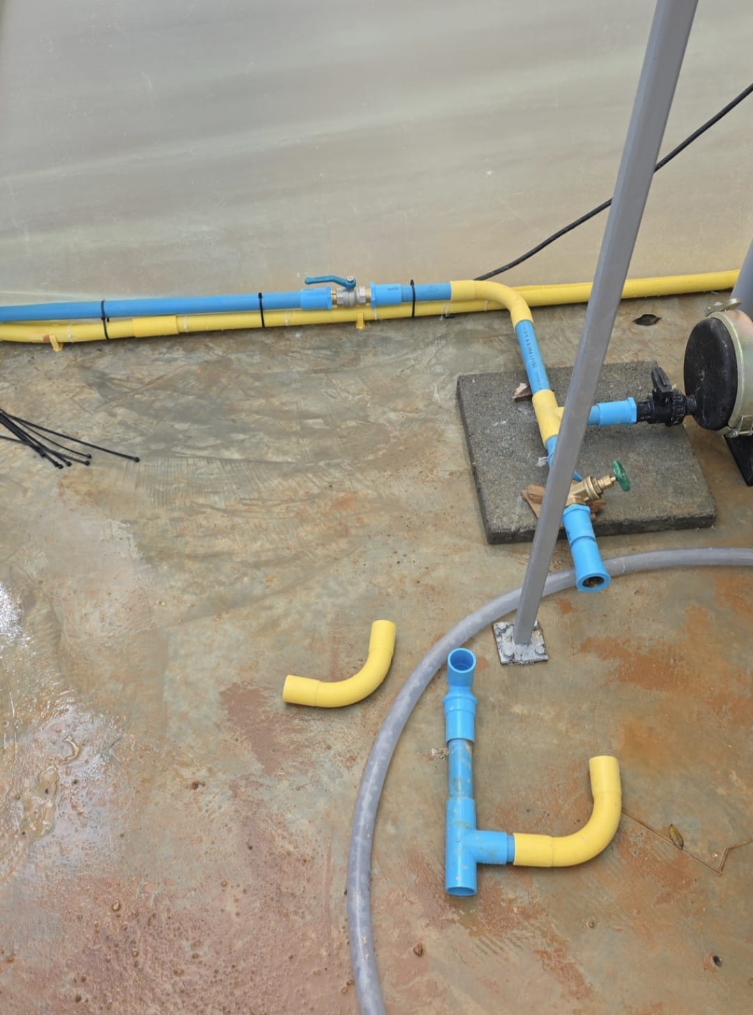 And so you sit on the concrete slab beside the pump—the heart of it all. It’s loud, slightly off-rhythm, like a jazz drummer who drinks too much. But it works. It throws pressure up the hill and into the tunnel. It lifts, it pushes, it hums. You look at the T-junctions beside it: yellow, blue, absurd in colour, childish even—but this is no toy. This is a nervous system. Miss one valve here, and the whole thing backs up, floods, bleeds out in chaos. You know. You've done it.