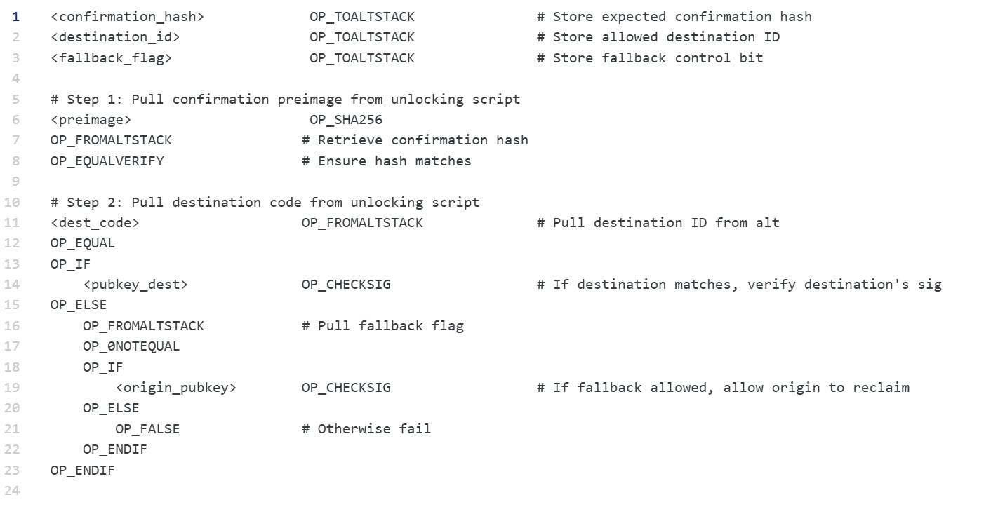 This system also allows for staged delivery, escrow with proofs, time-delayed release, and auditable fallback recovery by chaining macro-script branches and recording all conditional outputs prior to spend.