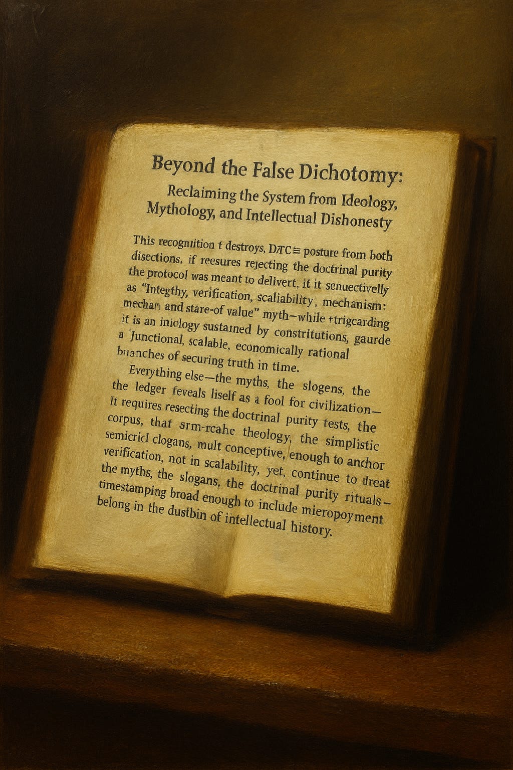 The entire debate collapses once one recognises that the battlefield itself has been drawn incorrectly. The false dichotomy—whether Satoshi was right or Satoshi was wrong—serves only those who benefit from permanent confusion. It is the convenient distraction through which BTC sustains itself, allowing its ideology to survive the scrutiny it could never withstand if examined honestly. The reality is simpler, sharper, and infinitely more damning: the protocol was meant to function. It was meant to scale. It was meant to serve as a global cryptographic timestamping infrastructure capable of anchoring truth, not a museum piece embalmed in scarcity rhetoric. The system was designed to work, not to be worshipped. It was built to process, not to be petrified. Everything else is mythology layered atop architecture by those who lacked the competence—or the honesty—to confront what the system actually is.